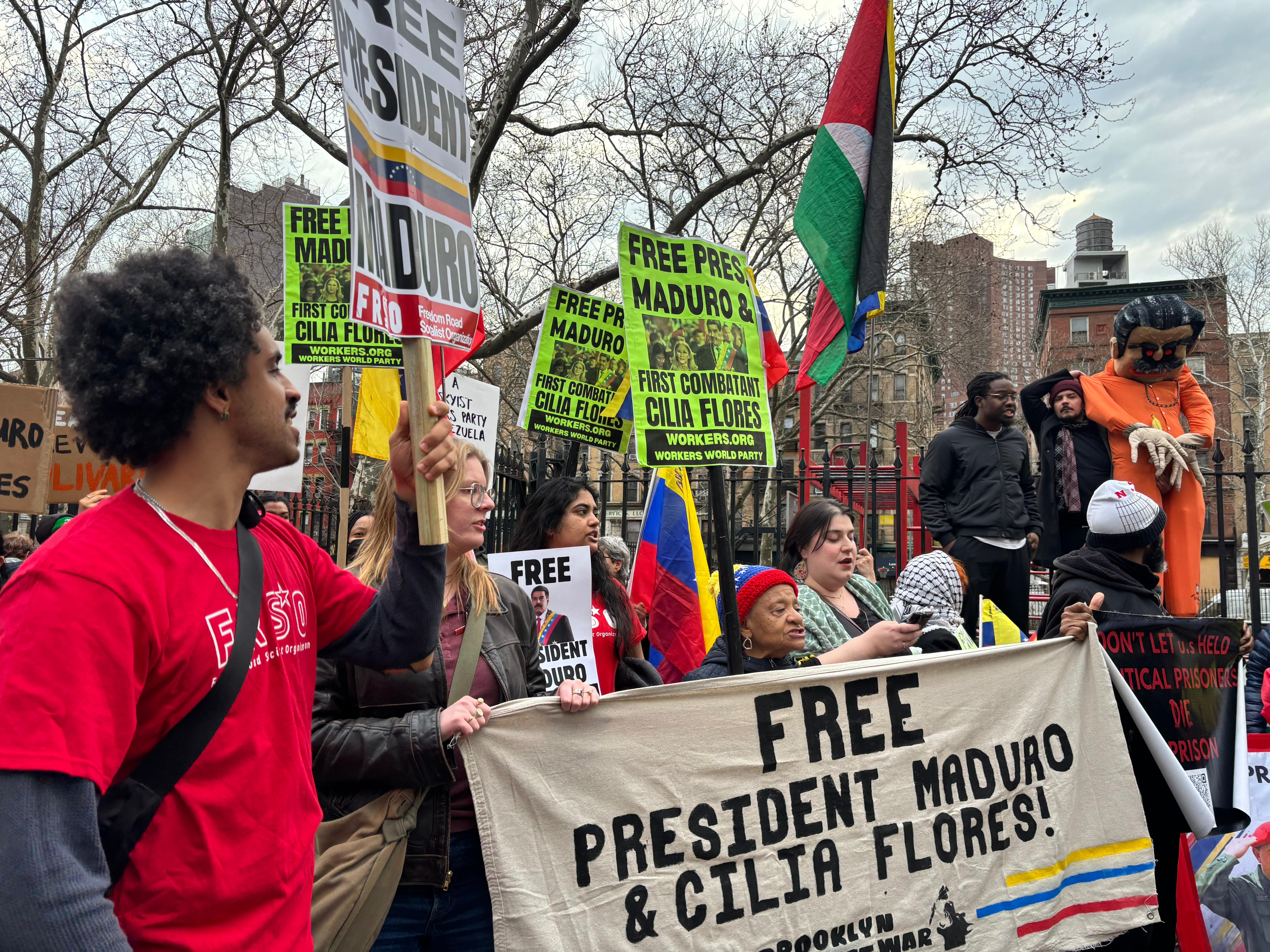 Tom Burke, miembro de la organización Freedom Road Socialist, acudió en torno a las 08:00 hora local a las inmediaciones de la corte donde está previsto que comparezca Maduro, dos horas antes de las 11:00, cuando estaba convocada la manifestación en contra del depuesto presidente.