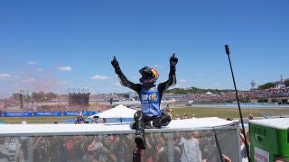 Se lo lleva el pequeño de los Márquez. Carrera espectacular del de Gresini que cumplió todos los pronósticos como favorito para llevarse la victoria. En ningún momento dio opción a ninguno de sus rivales y nos quedaremos con la duda de si su hermano le hubiese podido dar guerra.